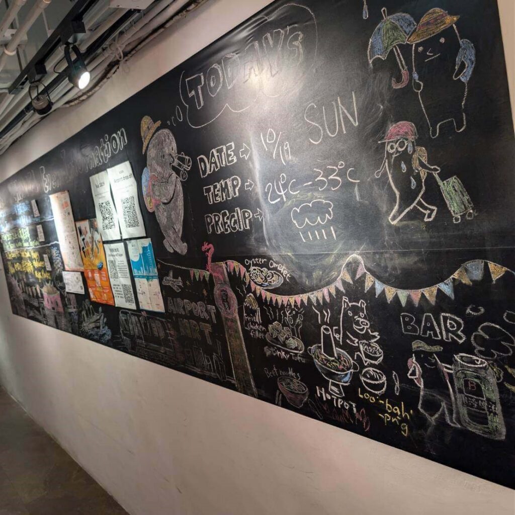 一進入門口後,就可以看見文青有朝氣的粉筆畫,充滿著背包客棧的溫馨氛圍