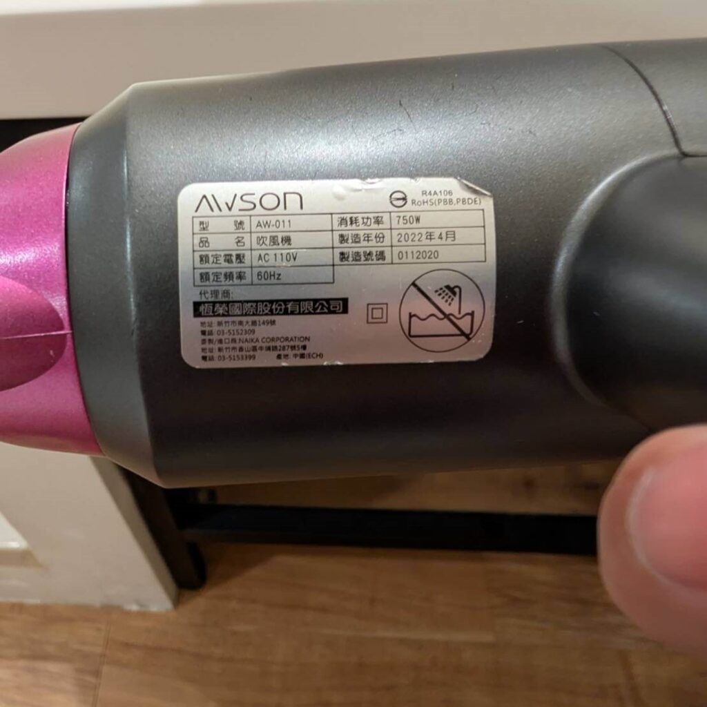 在洗手台下方也有小麻布袋,裡面裝著是日本品牌awson吹風機